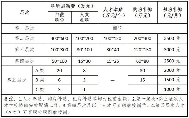 1.引进人才全职到岗后,除享受国家规定的相应专业技术人员的工资、社会保险等待遇外,学校提供如下待遇: