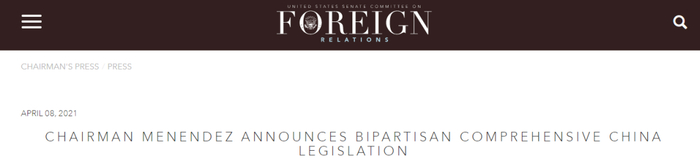 4月8日,一份被冠名为“2021年战略竞争法案”的议案,被美国参议院外交委员会主席抛出。
