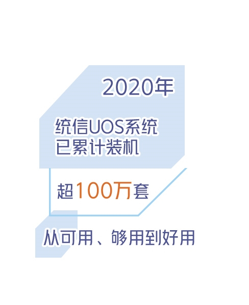 2020年,一款名为统信UOS的国产操作系统渐渐在国内市场崭露头角。统信软件公司总经理刘闻欢表示,为了打磨统信UOS系统的使用体验,统信团队完成了近3万次适配工作。2020年,统信UOS系统已累计装机超100万套,经过长时间的迭代与优化,统信UOS操作系统在日常办公领域,已经从可用、够用进化为好用。