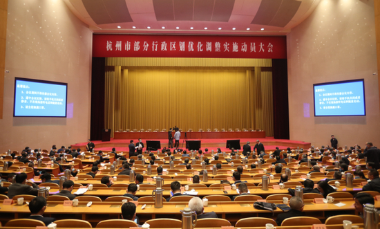 4月9日上午,杭州市部分行政区划优化调整实施动员大会,在浙江省人民大会堂召开。