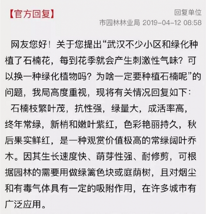 武汉市园林部门曾在2019年表示