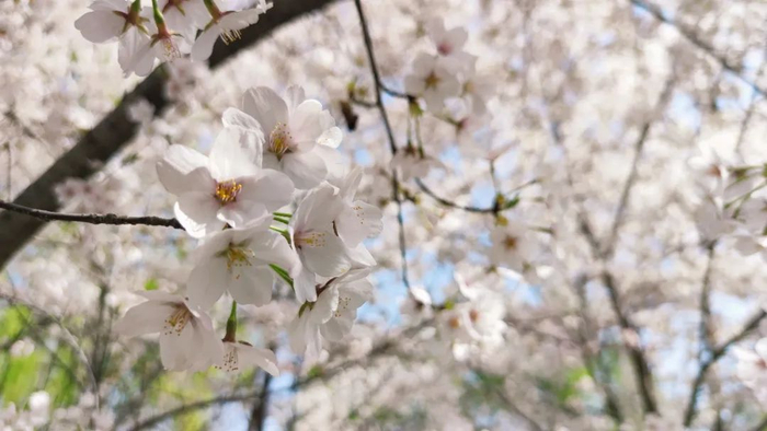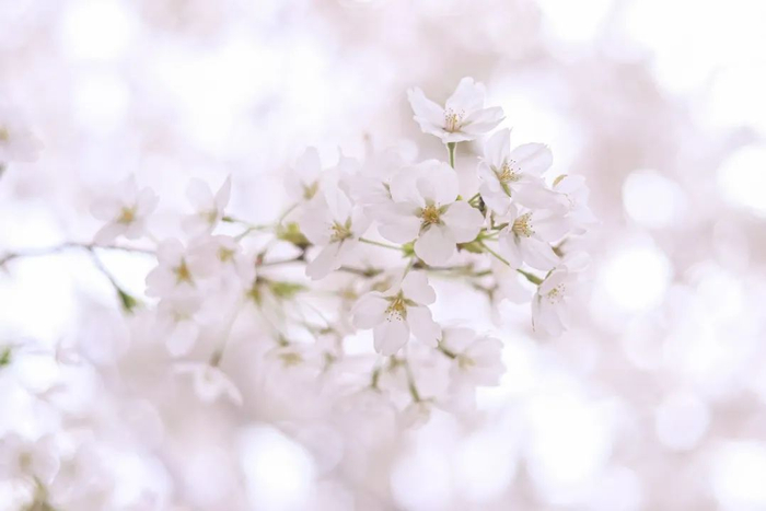 染井吉野樱的花是清透的粉色,象征着爱情与希望,一朵朵挂在枝头,仿佛一个个干净澄澈的小精灵,等待着人们观赏。