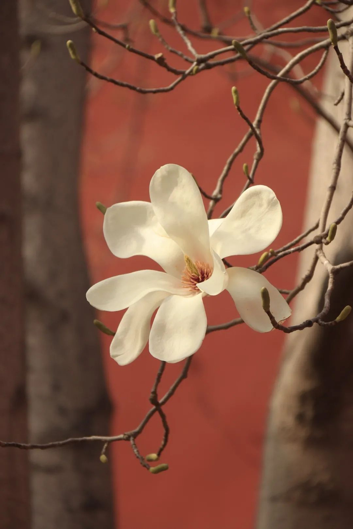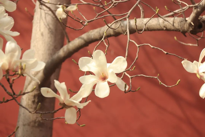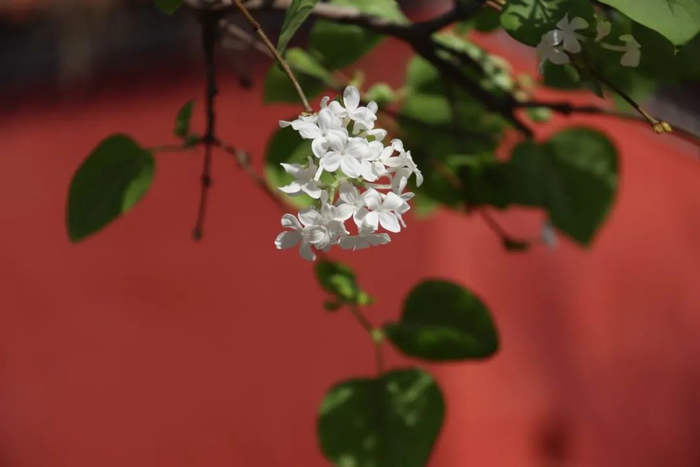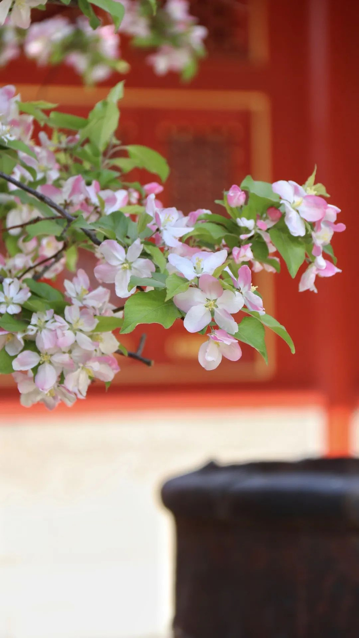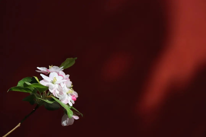 故宫的红墙映衬着一朵朵清丽的花,花朵也让这厚重而古朴的宫院变得生机勃勃。