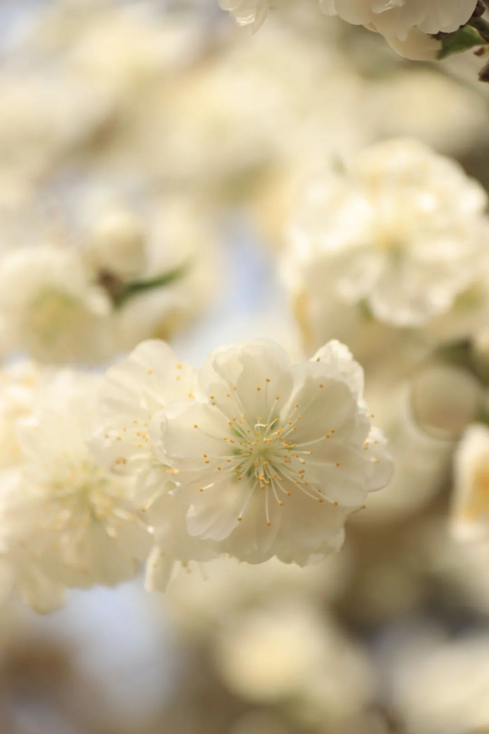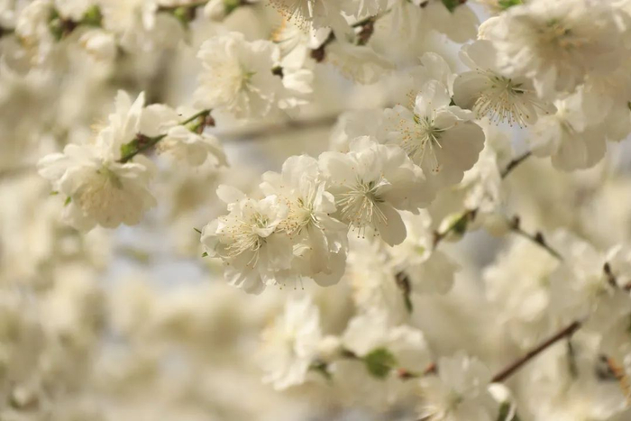 不同于花色艳丽的碧桃,白花山碧桃多出几分清新淡雅之姿来,作为桃花与山桃的天然杂交品种,白花山碧桃并不多见。