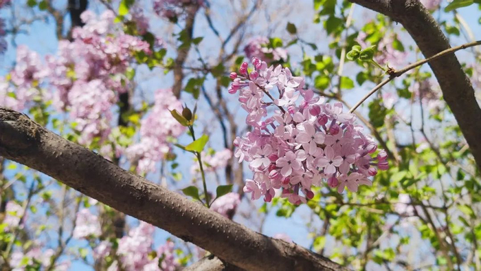 行走在丁香花丛中,一缕缕清香沁人心脾;张目远望,紫霞满天。