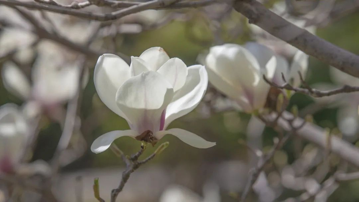盛开的白玉兰好像在枝头堆起片片雪绒,但却丝毫不添冷意,唯有幽远典雅的清香味令人魂牵梦萦。