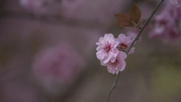 美人梅,花如其名,在春风中绽开,好似一位年轻貌美的少女,面颊粉红,眉清目秀,在春日和煦的阳光下绽开温暖的笑容,晶莹艳丽,芳香袭人。