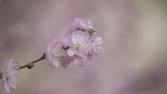 浅粉色的桃花,白中带紫的玉兰,带来更加艳丽的的感觉。