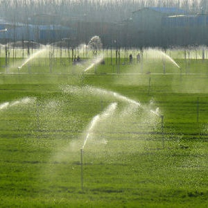如今节水的自动或半自动喷灌方式在农村逐渐增多。在沈家村的另一块地里,伸缩式喷灌让人眼前一亮,农民可以通过手机控制伸缩。这套水管埋藏在地下40厘米的地方,手机上一点开关,水管就钻出地面,到达一定高度后,就开始喷水。