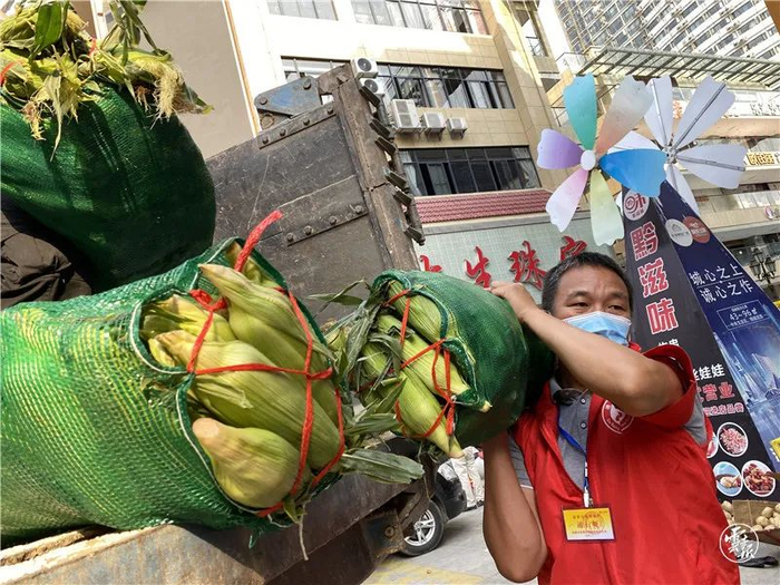 在短短时间内,便收集了4.5吨玉米以及各类蔬菜。