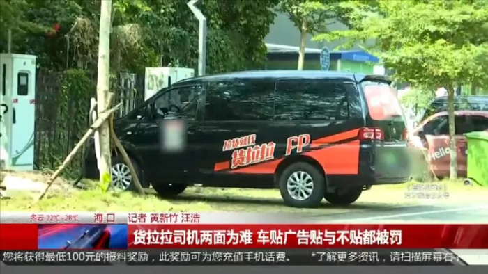 直播海南微信公号4月11日消息,海口的王师傅是一名货拉拉司机。按照公司要求,司机需要在车身粘贴货拉拉的标语和二维码等广告。可实际情况是,按公司要求贴了车贴广告,会被交警罚款;不贴,又会被公司罚款。于是,一直以来,王师傅都不知该如何是好!