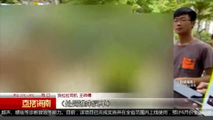 海口市公安局交警支队秀英大队五中队 民警 郑浩然:这辆车是把这个广告贴在它这个后视玻璃上,就是你在驾驶的时候会影响你看后边的视线,影响驾驶安全。只要有玻璃的是绝对不可以贴的,如果是封闭式货车它是可以贴的,但是不能超过三分之一。