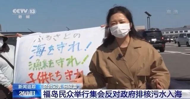 总台记者何欣蕾:来自福岛各地的民众自发聚集在街头,大家打出了反对含氚废水排入海洋,海洋在哭泣、鱼类在哭泣、地球在哭泣的标语,也有民众打出了守护故乡的大海、守护渔业、守护孩子们的标语。大家通过这样的方式在表达着对排污入海方案的反对,也表达着守护家乡、守护海洋环境的决心。