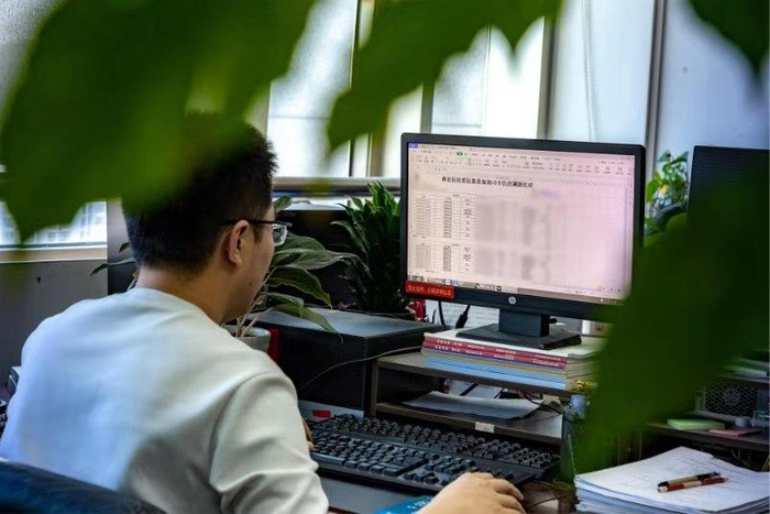 ↑黄岩区纪委监委党风室干部对问题存疑的党员干部油卡充值情况进行数据比对分析。