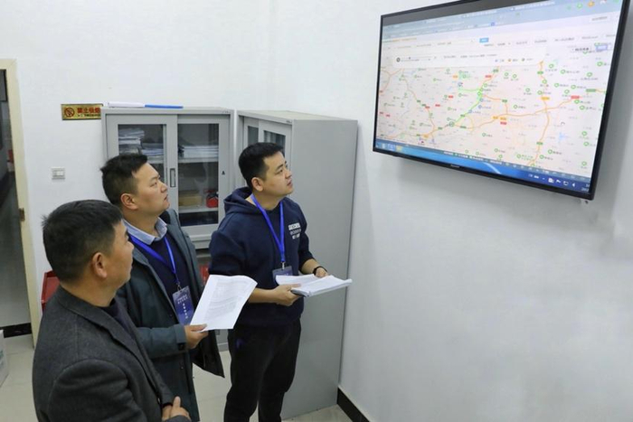 ↑湖北秭归县纪检监察干部实时查看公车行驶轨迹。有人私车公养,比如加油卡用得多,但公车并没有运行那么多,就可以通过这个平台进行比对。