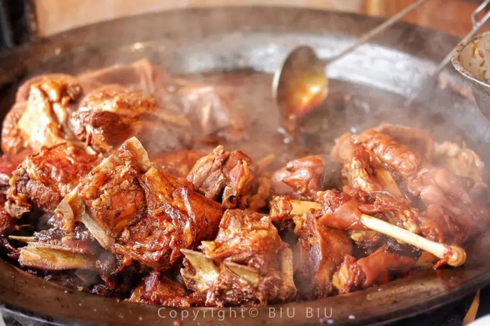 新市的羊肉远近闻名,许多食客不惜万里前来觅食。羊肉不去皮,带着骨头就上桌,厚实得让人第一眼怀疑它的口感,等到一口咬下去,酥而不烂,肥而不腻,筷子轻轻一拔,还会四散开来。