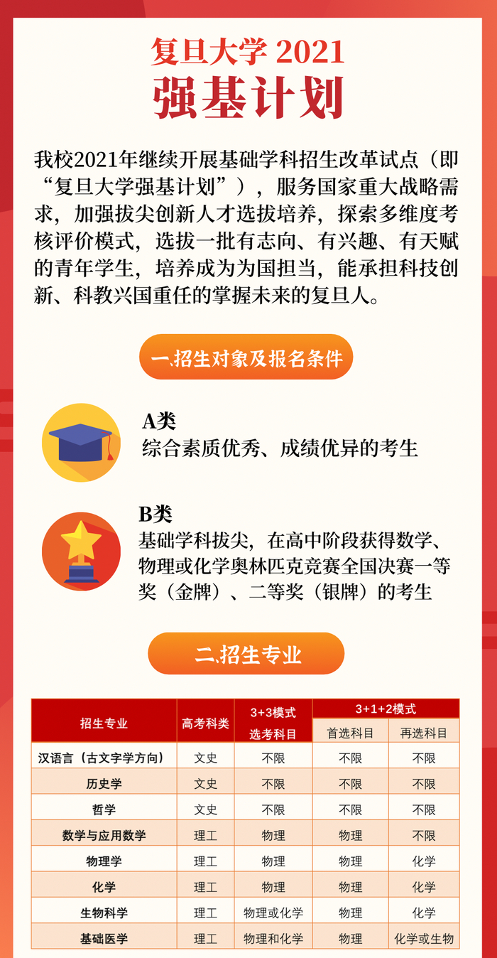 复旦大学2021年强基计划招生简章及高校农村学生专项 “腾飞计划”招生简章发布!一文读懂