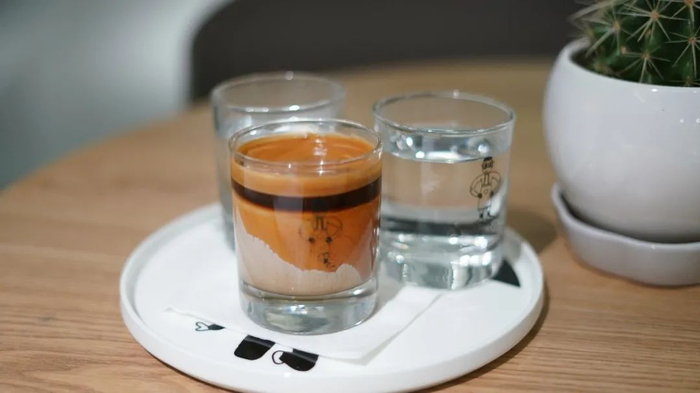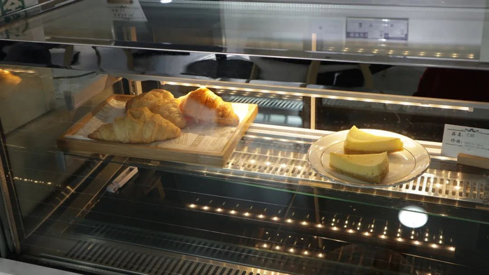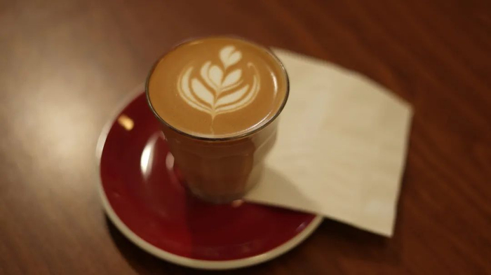 宽敞整洁的店内,咖啡豆和烤羊角包的混合香味在空气中酝酿。咖啡刚刚抿下去是绵密的奶泡,随后微苦而回甘的味道迅速在唇齿间蔓延开来。金黄的羊角包拥有酥酥脆脆的外皮,层层叠叠,每一个蓬松气孔里都是浓郁的黄油香气。喝一口咖啡,再咬一口羊角包,一天好心情由此开启。