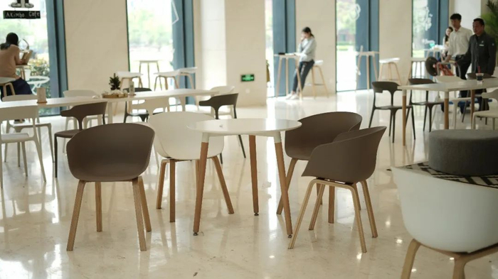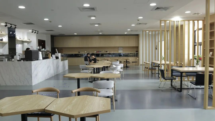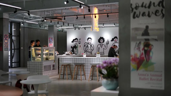 在设计之初,龚朝晖就想好了做咖啡文化的传播——大面积的开放空间可以搭建一个TED演讲台,桌椅可以随意组合让学生们开展主题活动。咖啡厅内还隔断成不同的包间用于师生讨论重点课题。