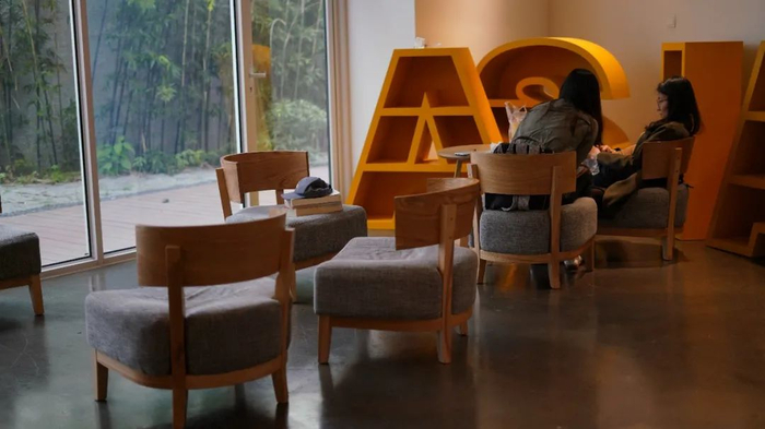 尽管空间有限,但文图店的空间设计依然颇具巧思:门前的阶梯式座位,不仅能让同学们享受好天气,也为一些小型表演、演讲和露天电影放映等公共空间活动提供了适合的场所;活动式玻璃窗能够完全敞开,使得窗台也能成为座位的一部分,同时也方便室内室外的交流;内里设置了可容纳8人的包间,满足师生们的讨论需要。