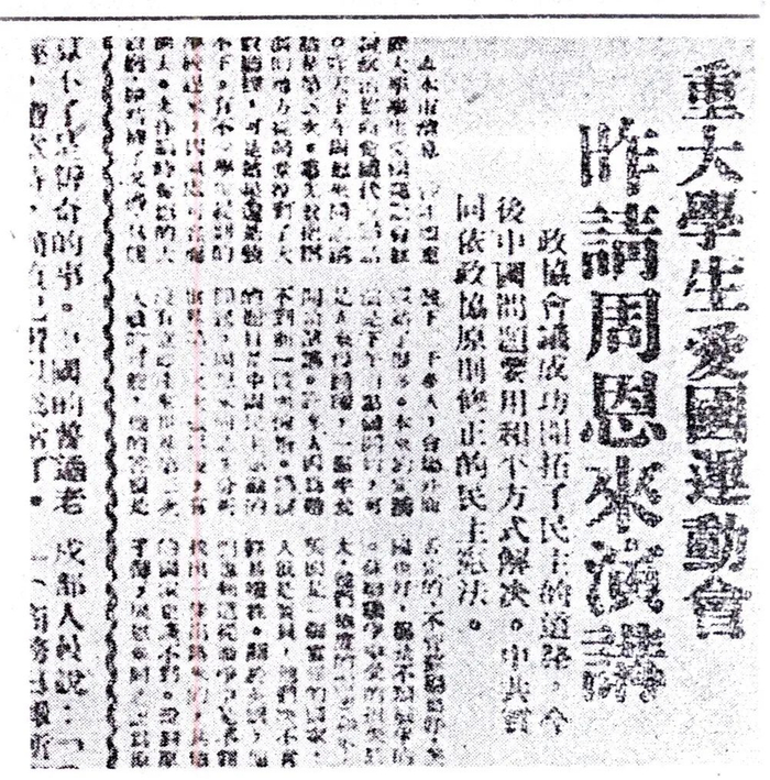 1946年2月,《新华日报》刊登周恩来同志第二次到重庆大学演讲的消息