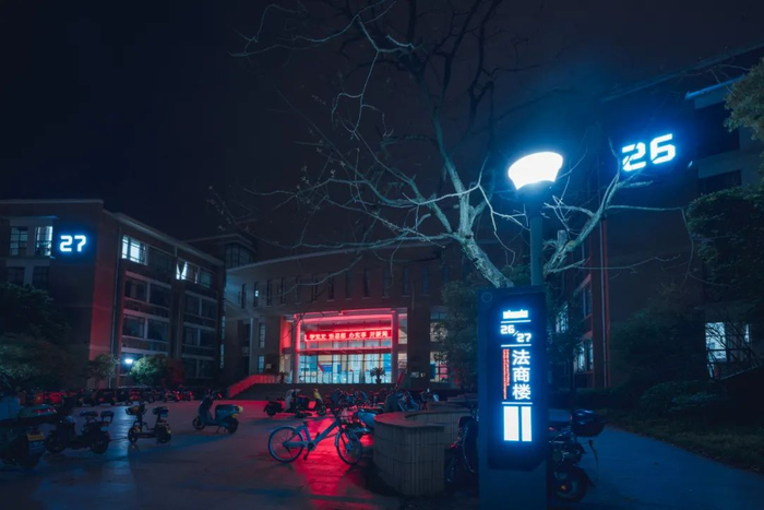 反复的定稿改稿,专家会谈再到确定路牌位置,前期的准备工作长达半年多。2020年后半段,项目进入勘测定点阶段,团队既要充分发挥路牌作用,又要考虑施工条件,如接电、路牌遮挡等问题。这项看起来小小的工程背后,是整个团队在浙师校园的各个角落奔走的故事。2021年初,顺利完工,浙师校园里亮起的每一块标识终于找到了自己的归属。