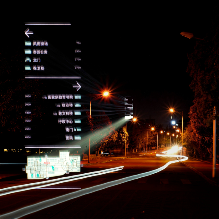 夜幕中闪亮着的标识