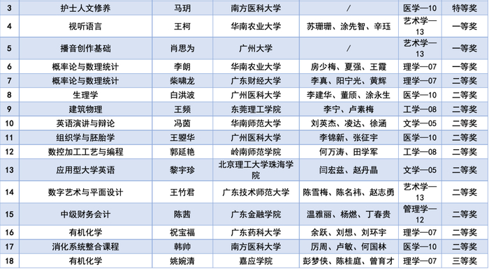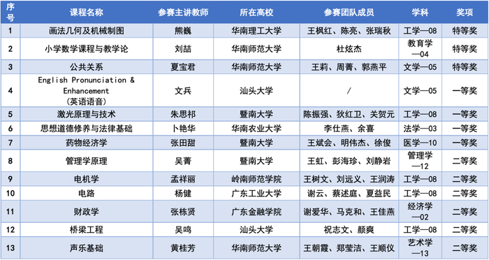 大赛按照教师职称,分设正高组、副高组、中级以下组,既有耕耘数十载、经验丰富的资深教师,也有近年涌现的充满朝气的教坛新秀,他们在比赛过程中展现了精湛的教学水平和优秀的教学风范,并展示了丰富的教学创新案例。最终,经专家评审、组委会审议,本次大赛共产生特等奖9项、一等奖9项、二等奖33项、三等奖47项,优秀奖67项,专项奖9项,优秀基层教学组织奖15项,优秀组织奖5项。其中获得特等奖的9个教师(团队)将代表广东赛区出征全国赛。