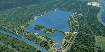 长虹卧波景区:湖西岸主湖面规划一座百米长桥,在长桥西侧规划一个湿地内湖,形成桥与堤卧湖的景观景点。内湖以荷花为植物景观特色,结合环湖赏荷的景观主题,规划不同水岸路径与景观园子。