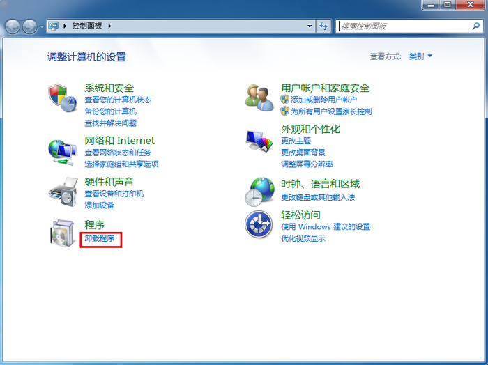 2. 点击”卸载程序”