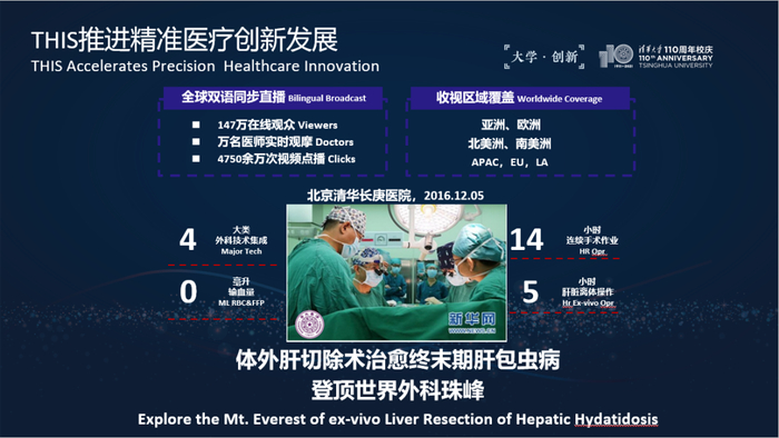 2016年,应美国外科学会和欧洲外科学会主席的邀请,董家鸿主刀并全程14小时不间断直播了体外肝切除这一最高难度的肝脏手术。在智慧科技的支撑下,实现了最大化病灶清除、最优化肝脏保护和最小化损伤侵袭的精准外科目标,向世界展示了我国领先的外科技术。