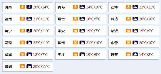 夜间最低气温:鲁西北的西部、鲁中和半岛内陆地区7℃左右,其他地区10℃左右。