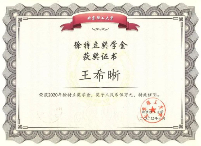 她曾获北理工学生最高荣誉