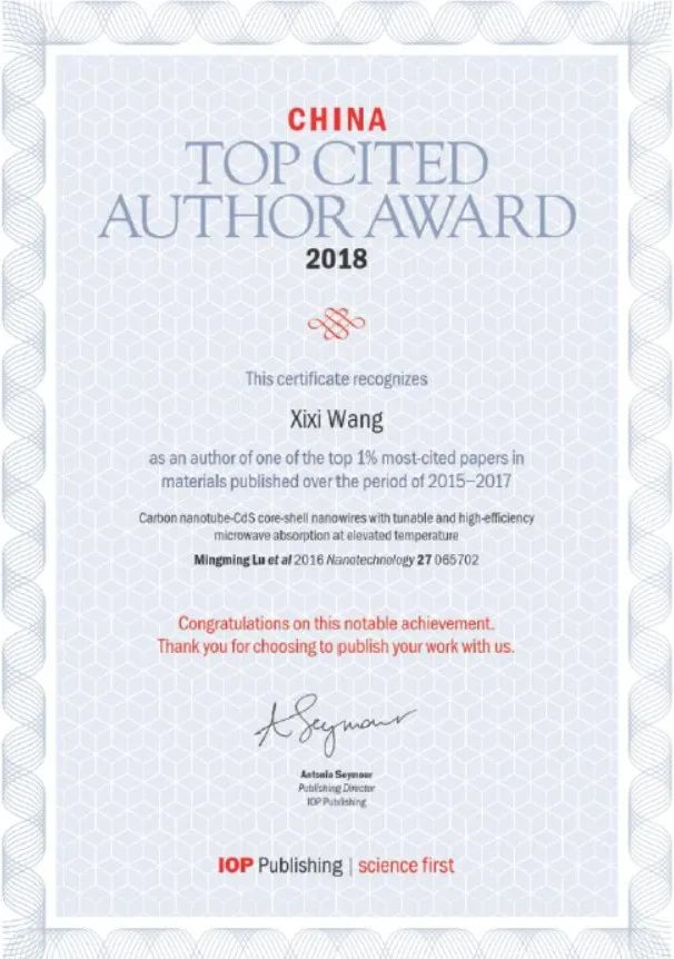 曾获英国皇家物理学会(IOP)