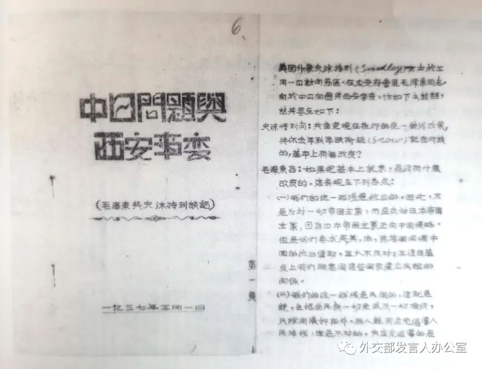 1937年1月,毛泽东与史沫特莱谈话《中日问题与西安事变》,藏于中央档案馆