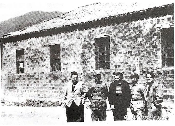 1939年,史沫特莱(右一)同新四军江南指挥部指挥陈毅(左二)、副指挥粟裕(右二)、德国记者汉斯·希伯(左一)、加拿大护士琼·尤恩(中)在皖南泾县云岭合影