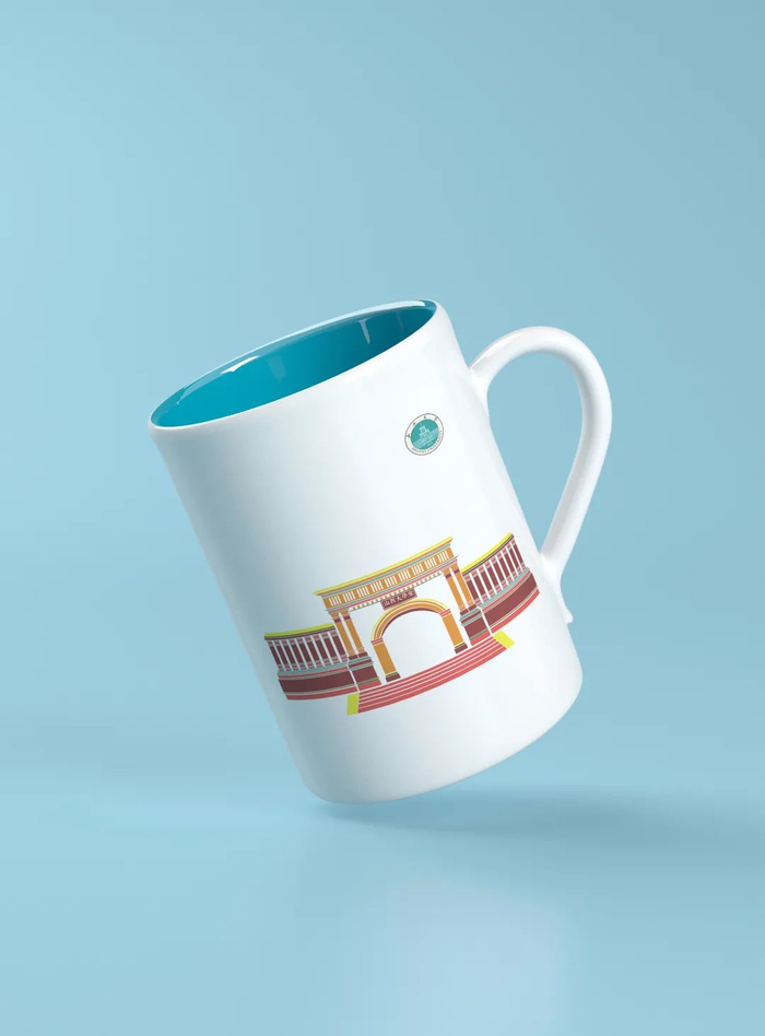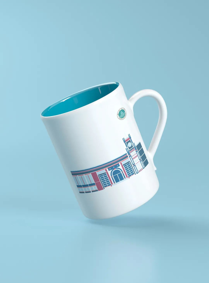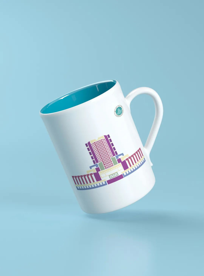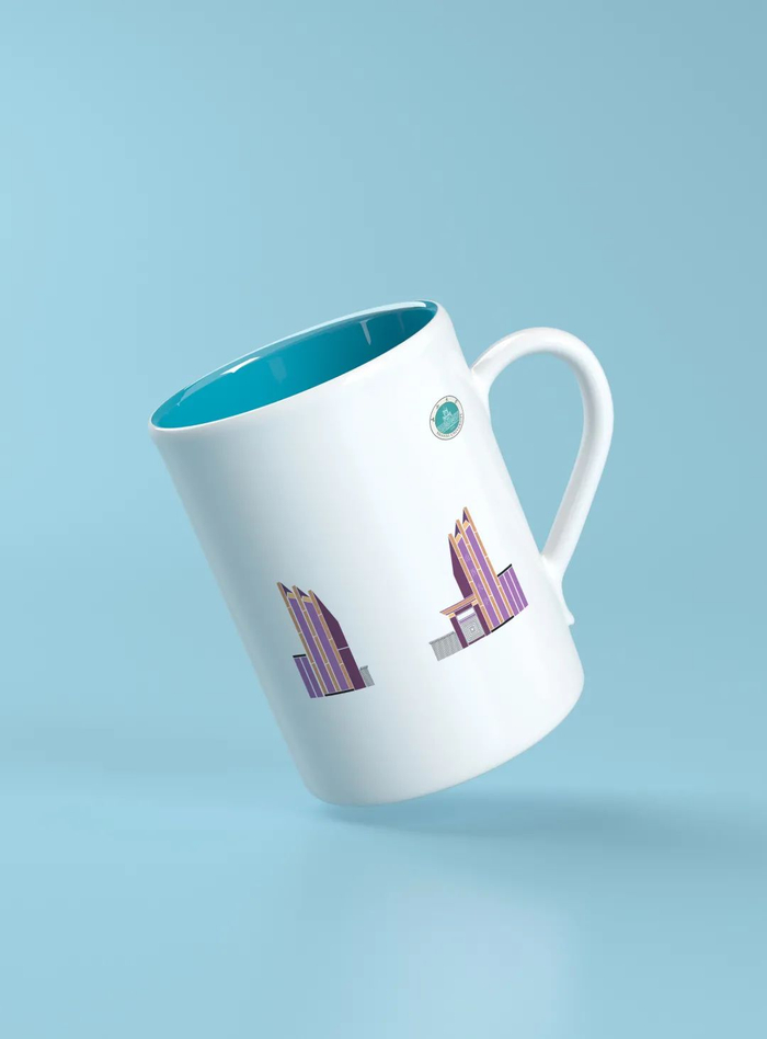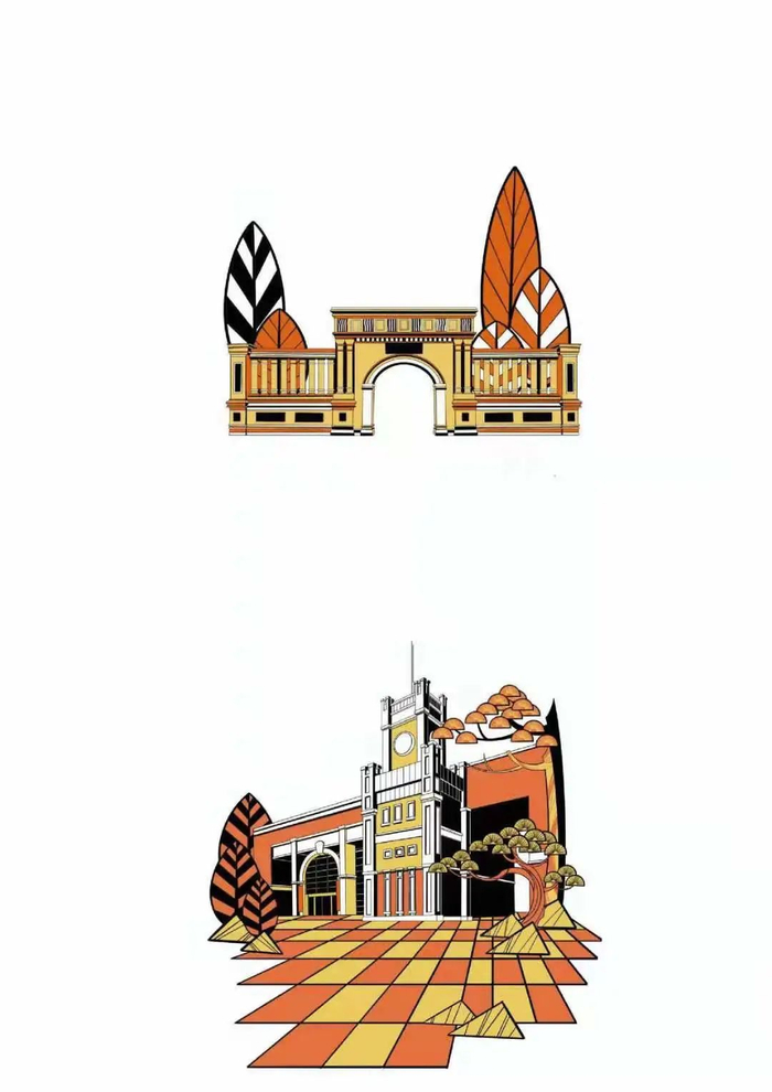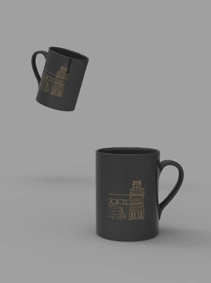 这款文创产品,是以水杯为载体,运用小的色块,大胆的颜色搭配,展现了山大校园的丰富多彩。图案的造型,简单但不失优雅。另一类型则是运用了线描的方式勾勒出建筑的轮廓,黑金的搭配彰显出了大气雅致。
