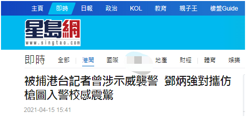 香港“星岛网”消息,香港警务处处长邓炳强今天(15日)表示,对于有香港电台(简称港台)兼职记者携带仿制枪械试图进入香港警察学院举行的“全民国家安全教育日”活动感到震惊,他形容后果可以非常严重,不堪设想。