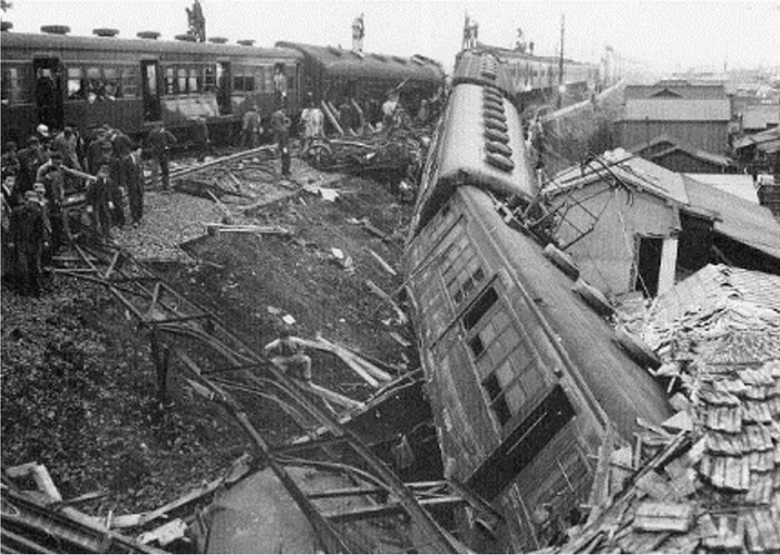 1962年5月3日夜里,位于东京都荒川区的国铁常磐线三河岛站,一列下行货运列车在红灯情况下错误发车,并在撞到阻挡列车的车挡后出轨,部分车厢阻挡了下行本线,与下行的客运列车相撞,导致客运列车出轨。客运列车的部分车厢被挤到上行本线,几分钟后上行列车驶来,与出轨列车相撞,并碾压了许多为了避难而进入线路的人,造成160人死亡、325人受伤。