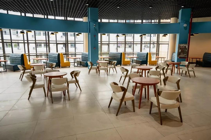 九食堂由之前的校本部职工食堂改造而来,作为食堂界的颜值担当,九食堂却立志做实力派。高雅的用餐环境,可口的菜品搭配,始于颜值,却也忠于味道。食堂一楼提供各种可口菜肴以及广式烧腊,食堂二楼早餐有精品米粉、面条、水饺、馄饨,中晚餐提供馄饨、水饺、酸辣粉、蛋炒饭、炒粉、盖码饭、西式意面,包厢、卡座、随堂点菜、包厢预定等多种口味及方式齐聚。