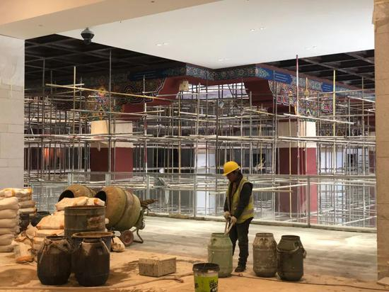 据悉,目前,西藏博物馆改扩建工程已全部完成主体结构、二次结构、钢结构、拆改加固等内容,正在进行幕墙施工、金顶安装、机电设备安装调试、安防、消防、暖通工程、室内精装修、给排水、园林景观等工作。同时,西藏博物馆展陈施工、公共服务各项设施设备采购等新馆开放筹备工作正在同时进行。
