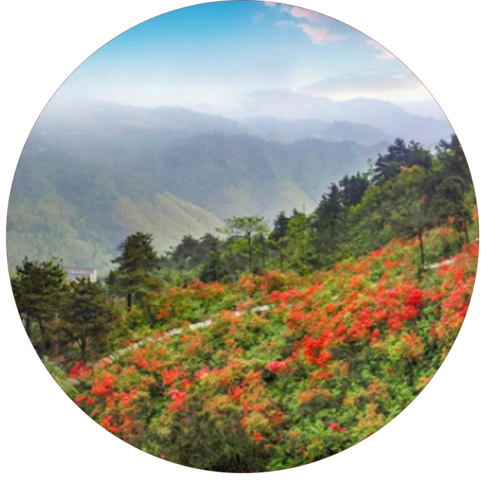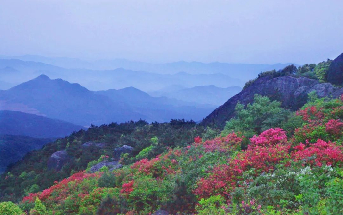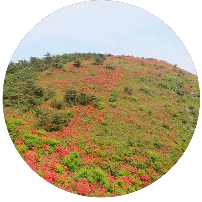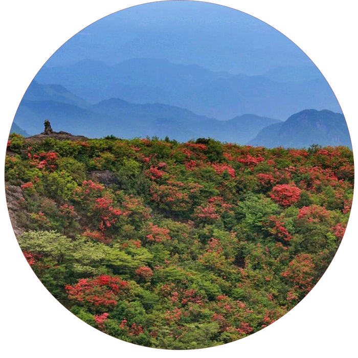 从海拔千米左右的琅川凹到白石尖主峰,都有杜鹃分布在山脊周边,面积约三四千亩。据当地人介绍,这里有很多杜鹃树龄估计在千年以上。花海深处,花枝闹猛,山冈上,十里杜鹃海,尽显江南春色。