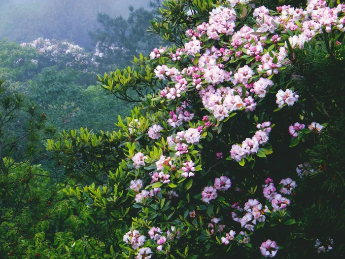 乌岩岭杜鹃花的品种非常多,开花的日期也不一致。猴头杜鹃是最常见的,五月开花;云锦杜鹃很高大,六月上旬才开花。