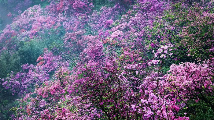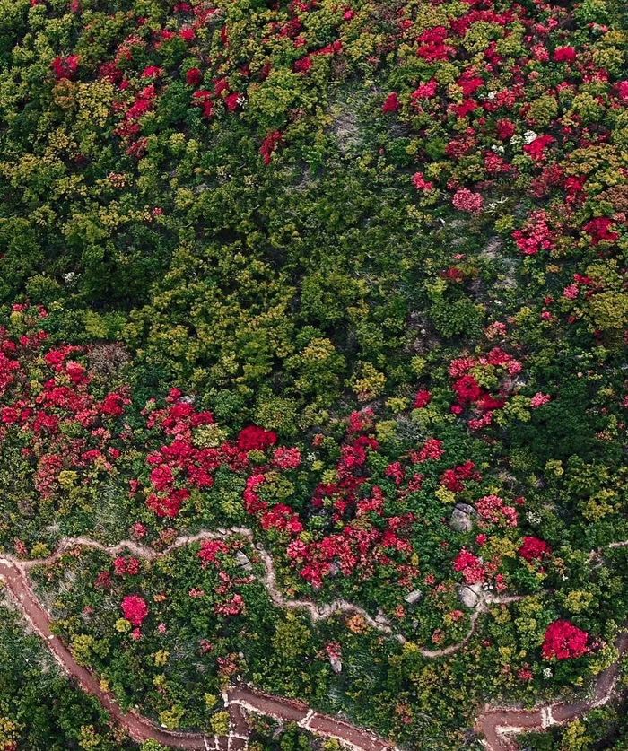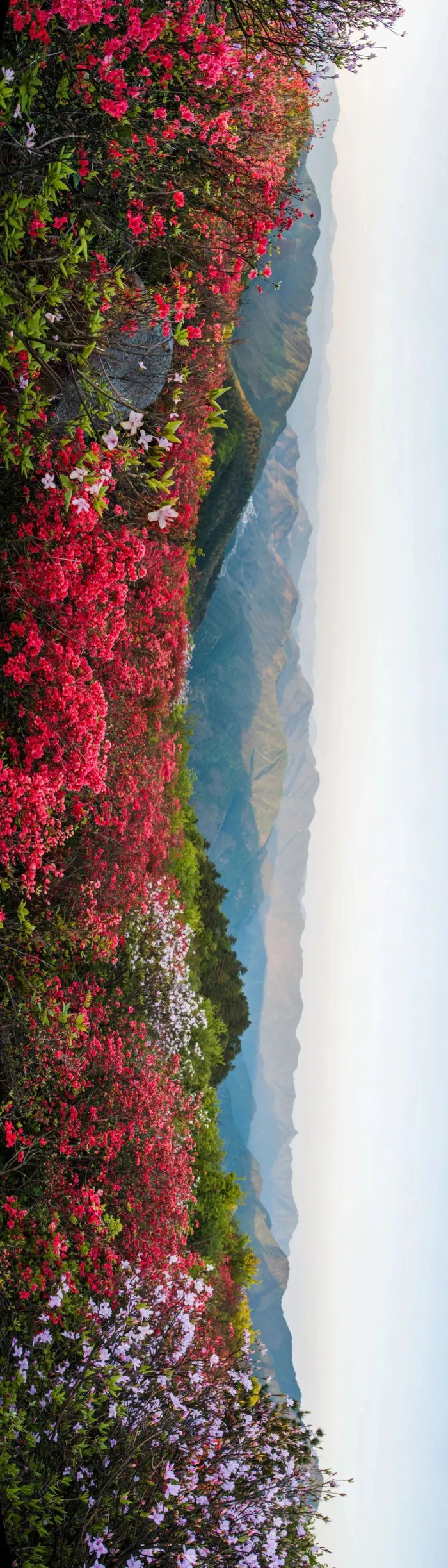 一到花开之时,山间徒步道的两边,鲜艳、纯粹的杜鹃花,形成“花海”奇观。