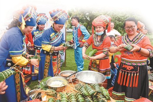在横县,设置了非遗实物展、“讲故事亲子体验”、听妈妈讲《百鸟衣》故事以及民族体育趣味竞技活动等环节,让群众享受欢快节日生活。(乔晓莹)