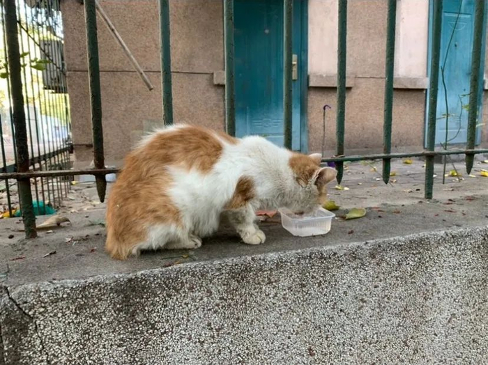 肖琳是在去年十月份认识阳阳的。“我当时从图书馆出来,刚好看到它在路上走。大概就在足球场南侧那条马路上。”肖琳回忆道。那时的阳阳眼睛与尾巴便已经出现疾病的征兆,觅食成了问题。山师学子的“投喂”以及路边垃圾桶里的残羹剩饭是它主要的食物来源,图书馆附近的一个纸壳子是它的“家”。它还有一个可以一起晒太阳的朋友——白猫二呆。