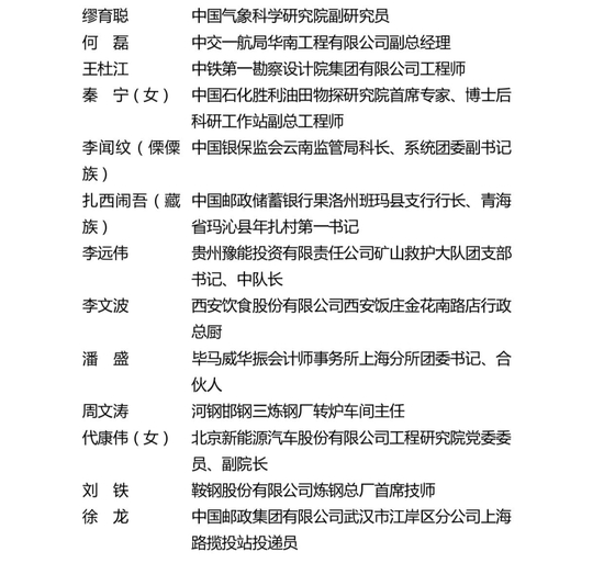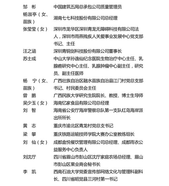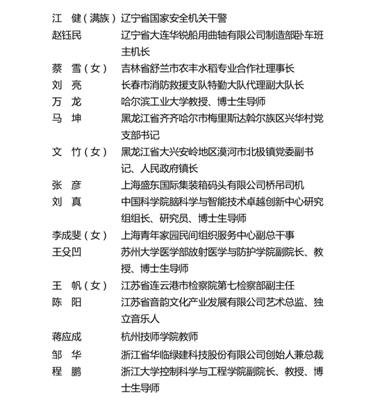 第25届“中国青年五四奖章”入围个人(30人)