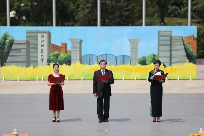 站在2021年明媚春日,与浙师相约到永远。“浙师的微笑,是我们梦开始的地方。”教师代表黄华童、毛力群、章莉以一首《相约浙师》道尽浙师六十五载栉风沐雨,薪火相传。