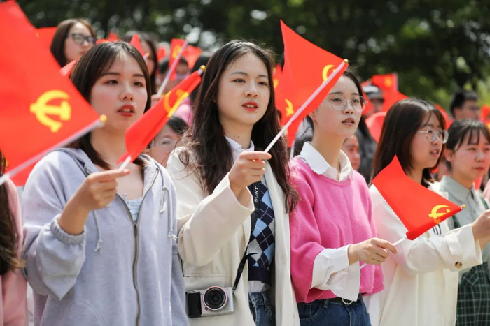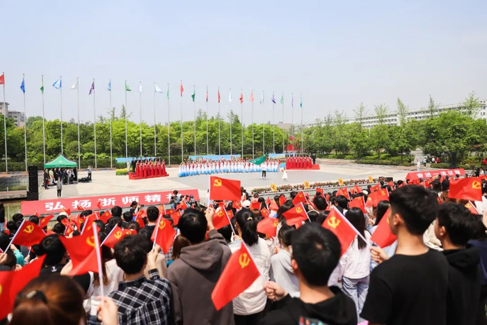 泱泱大国,人民被江山养育,而江山为人民所守护。柔美的舞姿与嘹亮的歌声相映衬,一曲《人民就是江山》,声声入耳,紧紧扣住师生的心。