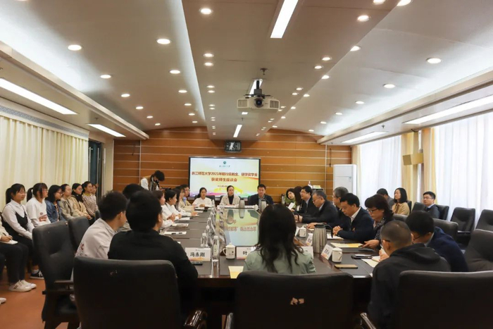 浙师大2021年“砺行奖教金”、“砺学奖学金”获奖师生座谈会在行政中心会议室举行。陈加元、蔡国华出席会议,朱坚主持会议。陈加元听了获奖师生代表感言后,现场赋诗一首: